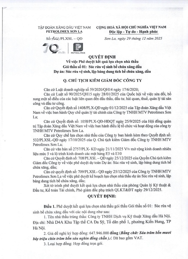 CÔNG TY TNHH MTV PETROLIMEX SƠN LA SON LA PETROLEUM ONE MEMBER LIMITED LIABILITY COMPANY