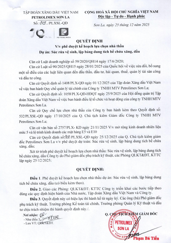 CÔNG TY TNHH MTV PETROLIMEX SƠN LA SON LA PETROLEUM ONE MEMBER LIMITED LIABILITY COMPANY