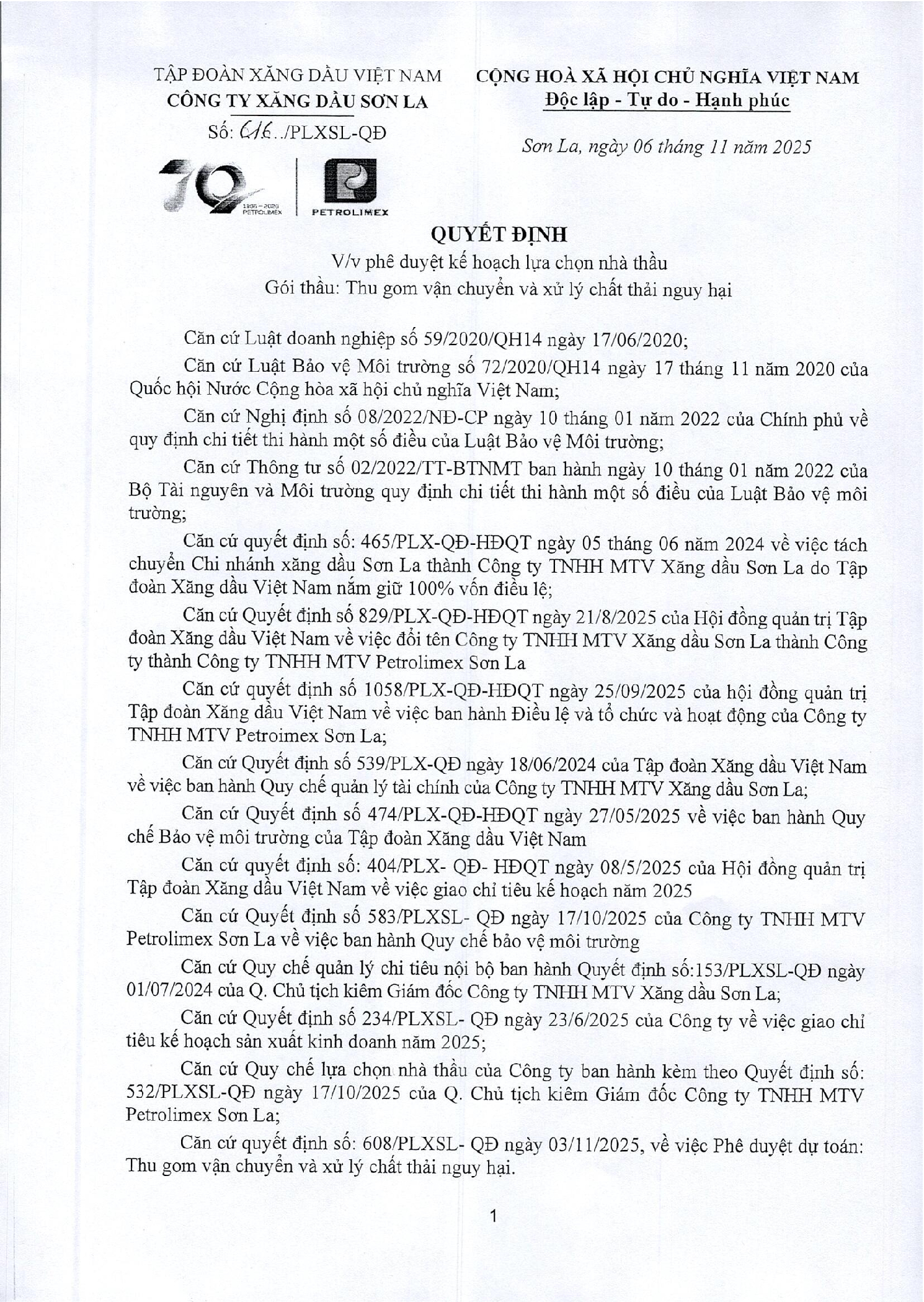 CÔNG TY TNHH MTV PETROLIMEX SƠN LA SON LA PETROLEUM ONE MEMBER LIMITED LIABILITY COMPANY
