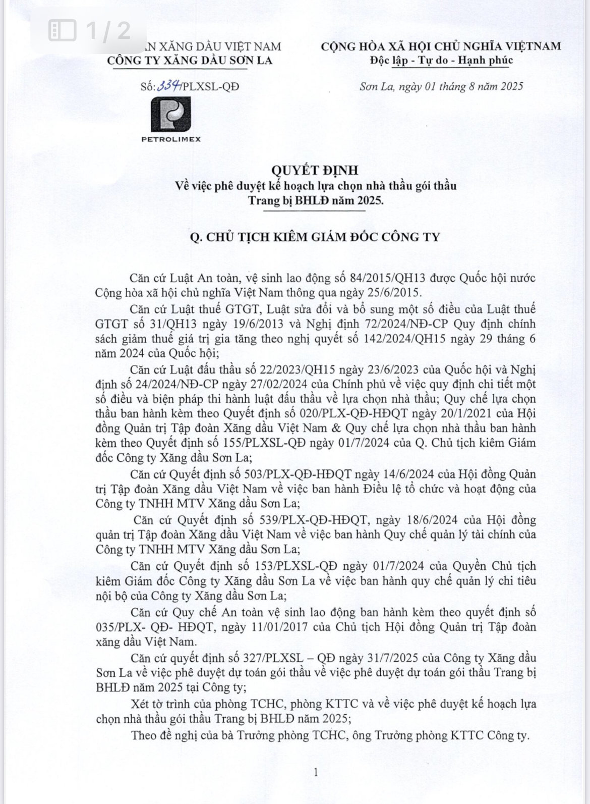 CÔNG TY TNHH MTV PETROLIMEX SƠN LA SON LA PETROLEUM ONE MEMBER LIMITED LIABILITY COMPANY