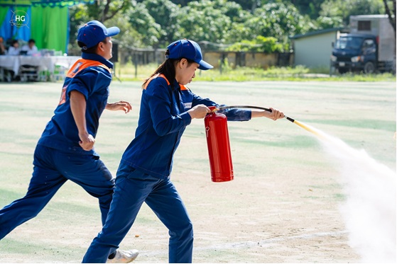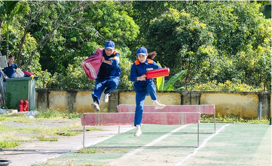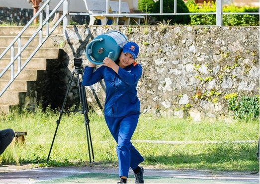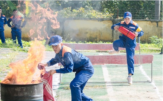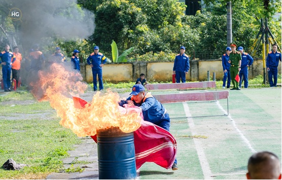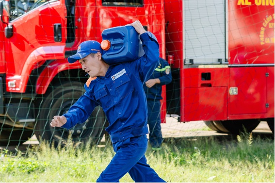 Phần thi thực hành diễn ra sôi nổi và kịch tính với các nội dung mô phỏng tình huống cháy nổ thực tế tại cửa hàng xăng dầu, gồm: chữa cháy cột bơm, chữa cháy bể chứa nhiên liệu, di chuyển tài sản và hàng hóa chống cháy lan. Mỗi vận động viên đảm nhận một nhiệm vụ cụ thể, đòi hỏi kỹ năng thuần thục, khả năng phối hợp nhịp nhàng và xử lý nhanh tình huống khẩn cấp. Với tinh thần tập trung cao, các vận động viên đã thực hiện thao tác chính xác, sử dụng phương tiện chữa cháy đúng kỹ thuật, nhanh chóng khống chế và dập tắt đám cháy giả định trong thời gian ngắn nhất. Phần thi không chỉ thể hiện tính chuyên nghiệp và bản lĩnh của lực lượng PCCC cơ sở mà còn góp phần nâng cao ý thức, rèn luyện kỹ năng ứng phó sự cố trong thực tế lao động hằng ngày.